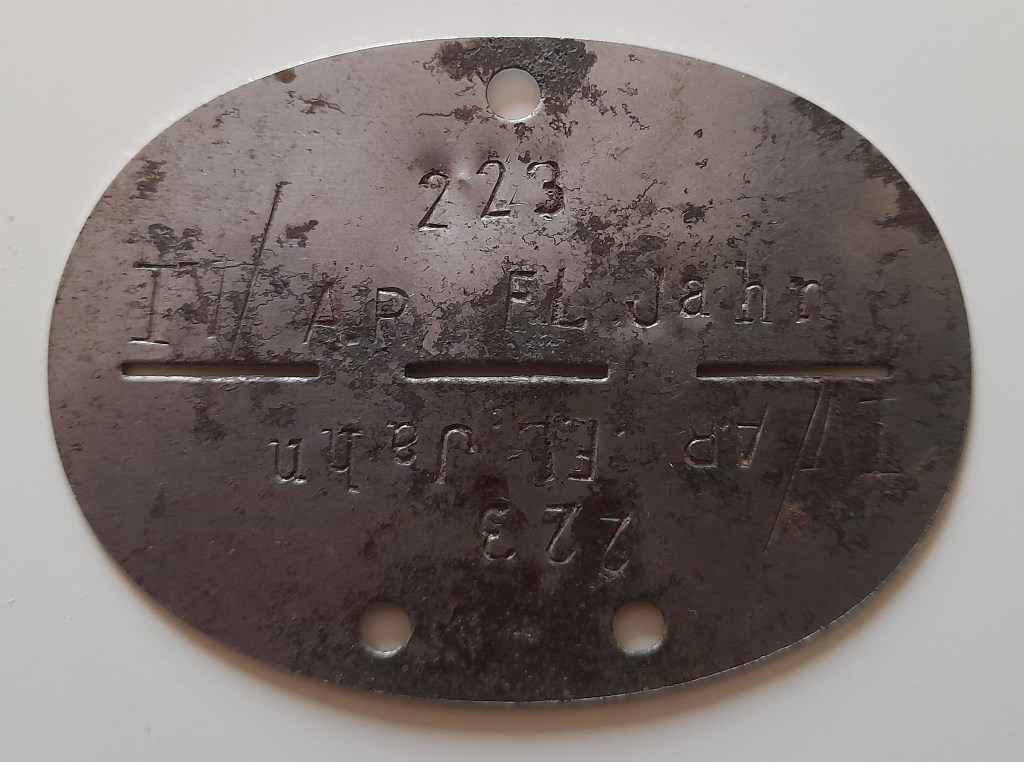 Il faut ensuite mentionner les pages déchirées de son Wehrpass, annihilant ainsi l’espoir de connaître son véritable parcours au Reichsarbeitsdienst (RAD, service allemand du travail paramilitaire) et dans l’armée au moyen de ce livret militaire… Dans quelles unités était-il exactement ? Il a choisi la Luftwaffe (tampon en page de couverture de son Wehrpass), mais sa plaque d’immatriculation non nominative, qu’il indique être la sienne, indique un régiment du Heer (armée de terre)…